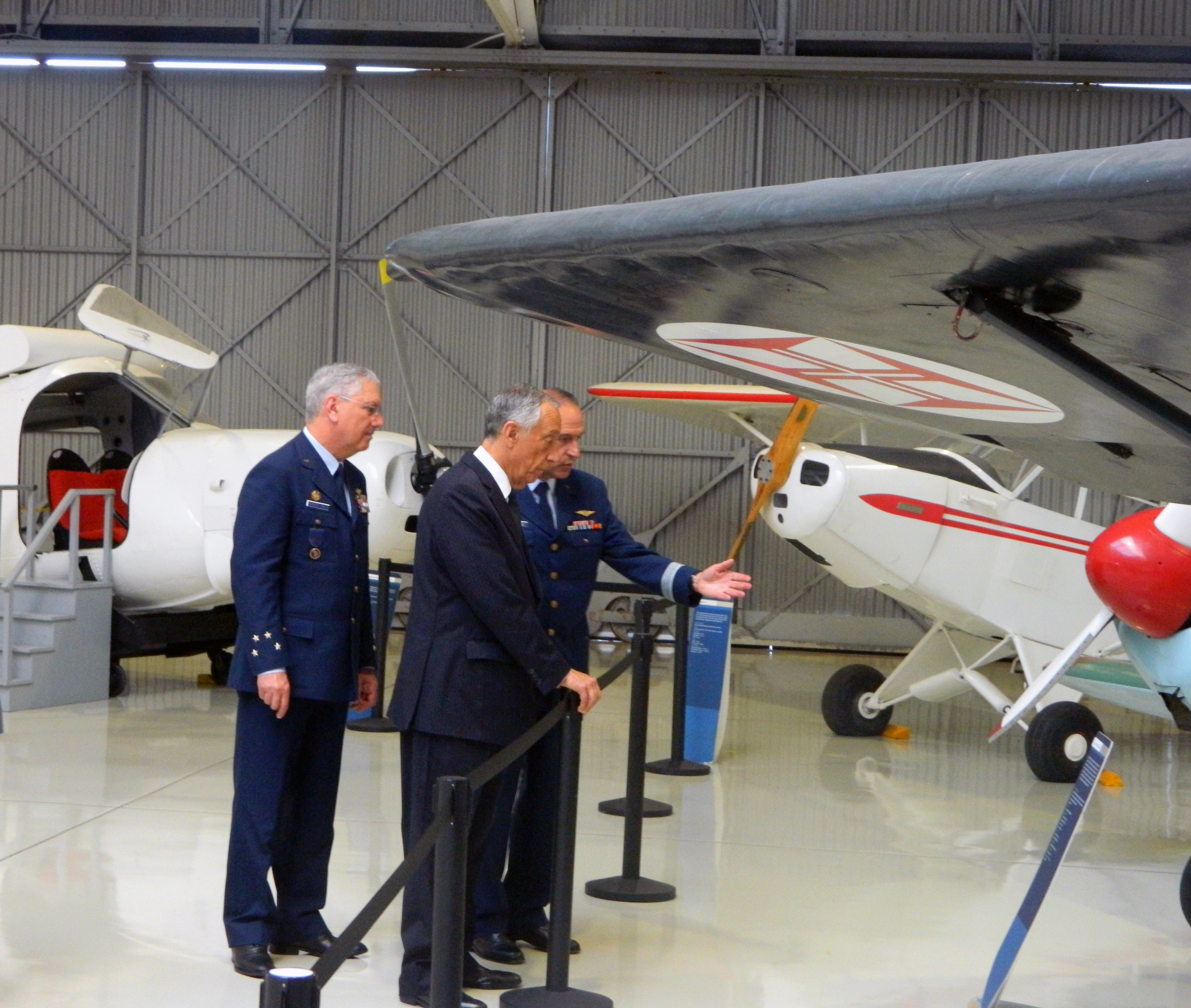 Durante a visita ao Museu, o Presidente da República teve oportunidade de ver algumas das aeronaves em exposição e parte do acervo existente.