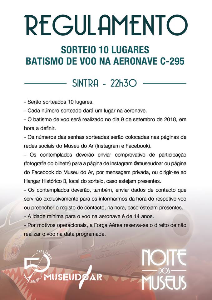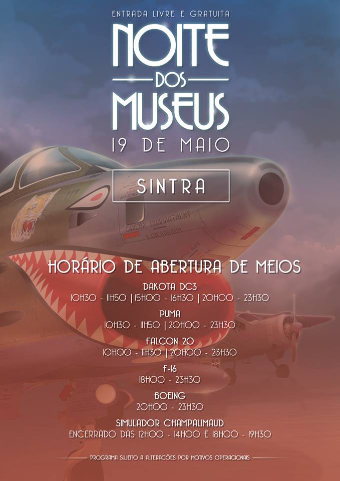 No dia 19 de maio de 2018, Noite dos Museus, teremos atividade Aérea com os Epsilons da Esquadra 101 "Roncos", com os F-16 que pertencem à Base Aérea 5 em Monte Real, com o C-130 Hercules e com o EH-101 Merlin.